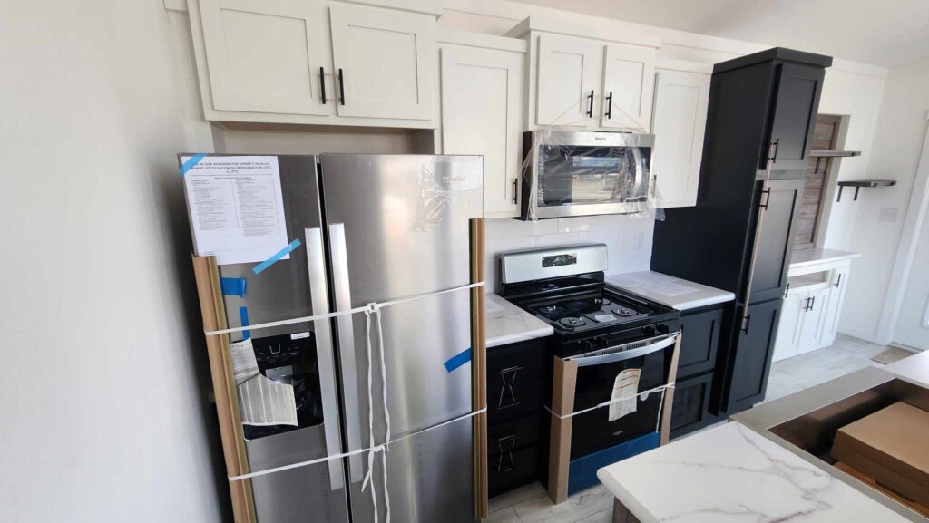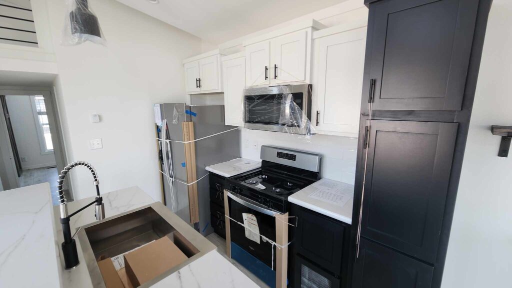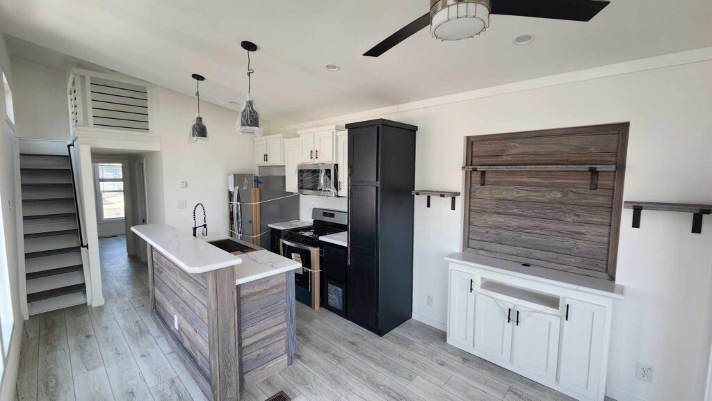 Here is a look at the kitchen, including black cabinets—another new color option you can now choose when you are customizing one of our park model homes.
