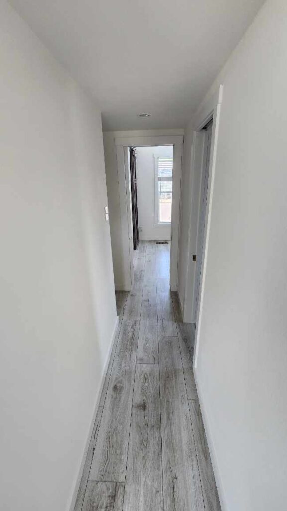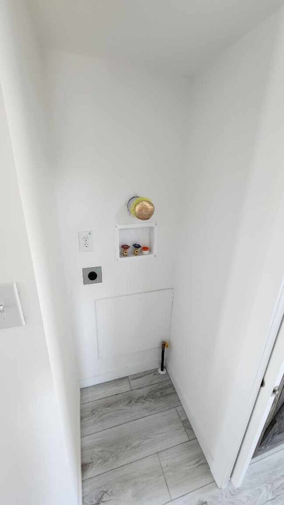 You can stack a washer and dryer in this part of the hallway. You can use a gas or electric dryer.