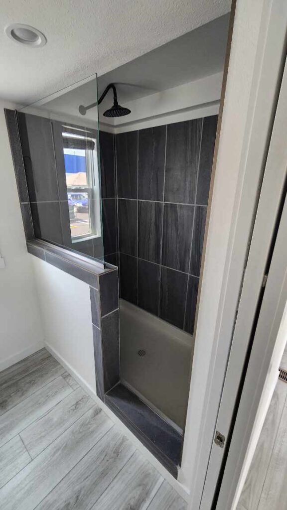 Wow! How often do you see a shower this size in a tiny house? The stall measures 60”, and includes a recessed headwell. So, anyone can use this shower without feeling cramped.