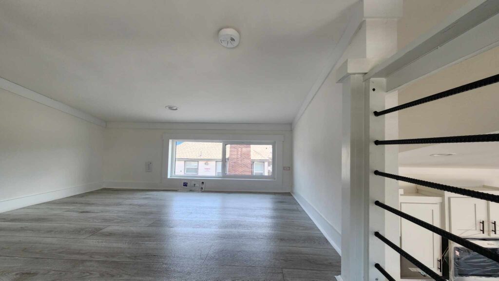 Here’s a look at the loft with its easy-clean vinyl flooring. This space is large enough to serve as a second bedroom if you want, or you can use it as a flex room or storage area.