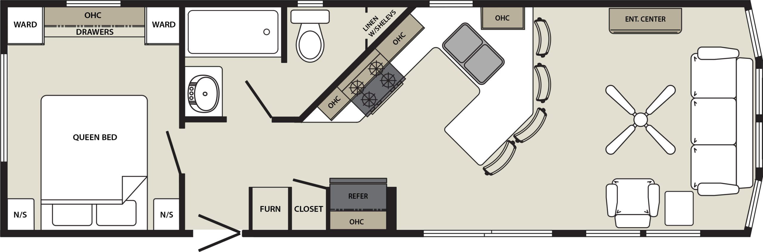• Qualridge-Interior—Summit-355FL-with-Front-Porch—White-Cabinets-&-Gray-Plank-Flooring
