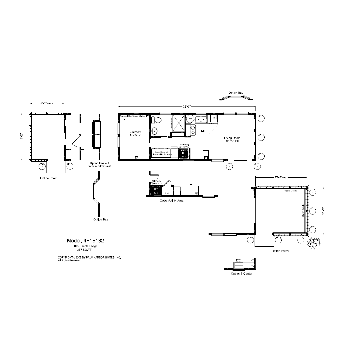 Discover 357 square feet of customizable space in the form of the Palm Harbor Shasta Lodge. This enchanting park model features a 10’7” x 10’6” living room with an optional bayed window. With full appliances ready for you in the kitchen and a large bathroom with a spacious shower, the Shasta Lodge is the turnkey tiny home you have been looking for. The downstairs bedroom includes options for a headboard module as well as a box window with a window seat or another bayed window. You also can customize this home with a porch. Click “Get a Custom Price Quote” to personalize the Shasta Lodge now.