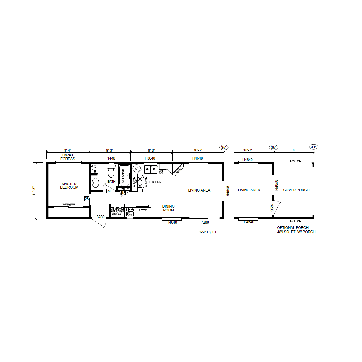 The stately Silvercrest Sierra Limited Whitney park model is a 399-square-foot house that proves how big tiny living can be. With a downstairs master bedroom, a combined kitchen, dining room and living area, and a large bathroom across from a linen nook, it is outfitted with everything you need for comfortable living in a small footprint. You can expand that footprint to 489 square feet with the optional addition of a covered porch. Personalize the Whitney park model home today. Contact us for a custom quote.