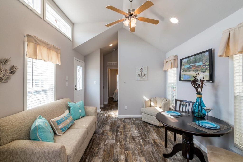 With tiny homes, it is different. You can actually build a fully customized park model home without breaking the bank. So, even though it may not have as many square feet as a traditional home, you can personalize every aspect of it from the paint to the trim to the railings to the interior finishes and more.
