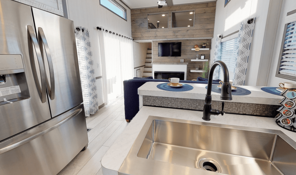 Park model homes are excellent for this purpose because they are typically a bit wider than other types of tiny houses. As a result, the living room can feel very airy and spacious.